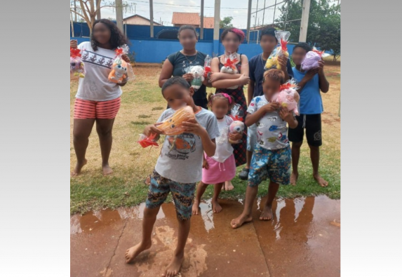 No dia das crianças, 12 de outubro, a comarca de Água Clara, sob a responsabilidade do juiz Pedro Gonçalves Teixeira, promoveu um café da tarde especial para crianças e adolescentes. A iniciativa contou com o apoio da prefeitura local, e os participantes foram presenteados pelo Projeto Padrinho com bichinhos de pelúcia.