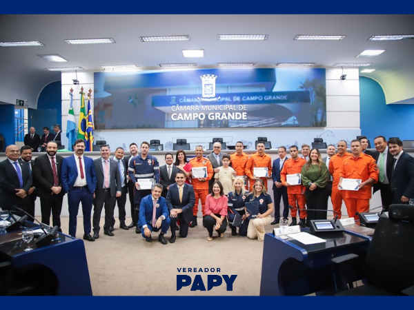 Homens e mulheres dedicados a salvar vidas, podem ser chamados de heróis. Reconhecendo esse empenho e o árduo trabalho que o presidente da Câmara Municipal de Campo Grande, vereador Epaminondas Vicente Neto, o Papy, entregou Moção de Congratulação aos militares do Corpo de Bombeiros e socorristas do SAMU (Serviço de Atendimento Móvel de Urgência).