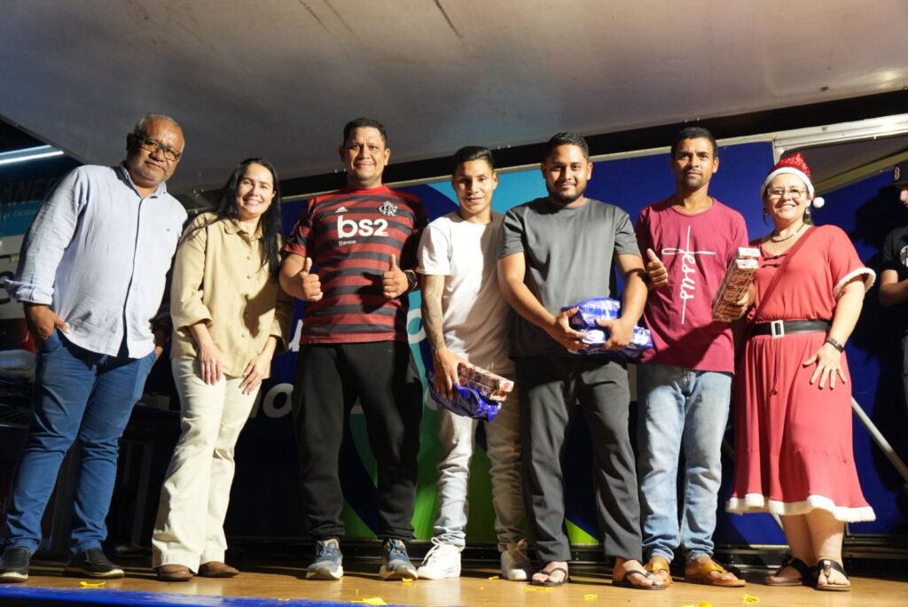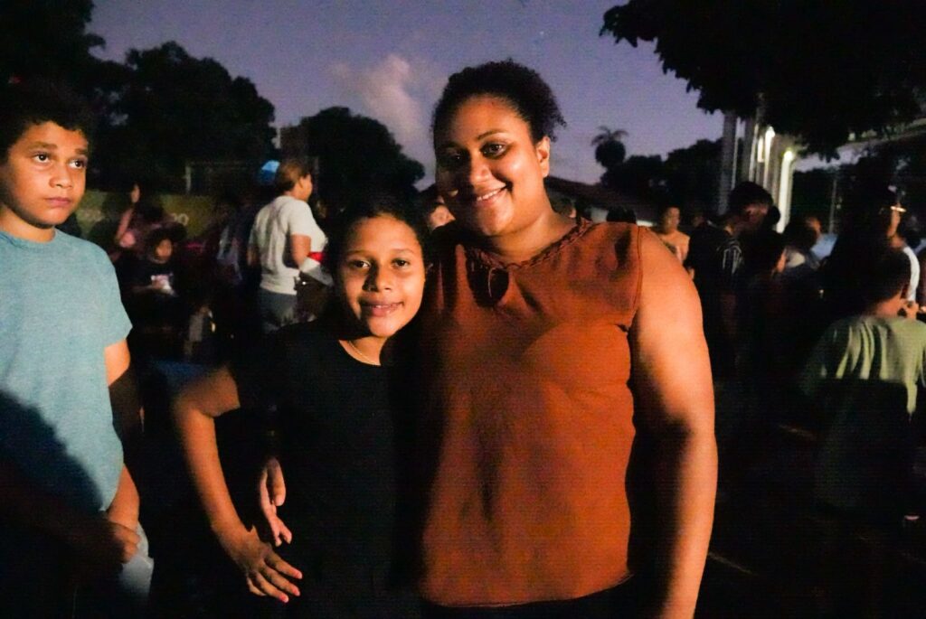 O clima natalino tomou conta de todos, inclusive de quem já conhece bem a importância desses momentos para a comunidade. Moradora do bairro, Poliana Francisco Galeano esteve na celebração ao lado da mãe e dos filhos, totalmente envolvida pela energia do evento. “Eu gosto muito desse tipo de evento no bairro”, afirma. “A gente fica ansioso para ganhar os prêmios, né? As crianças também. Eles estão ansiosos para ver o Papai Noel.”