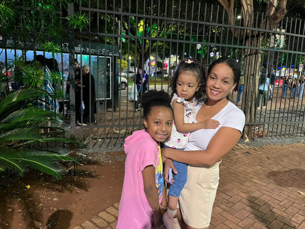 A experiência também foi especial para Adrieli Neiva, de 32 anos, moradora do Jardim Batistão, que levou a filha Manuela, de 5 anos, e o sobrinho Djalma, de 6. “Essa época do ano representa amor, paz e união. Foi a primeira vez que conseguimos vir, e foi muito bonito. As crianças ficaram encantadas”.