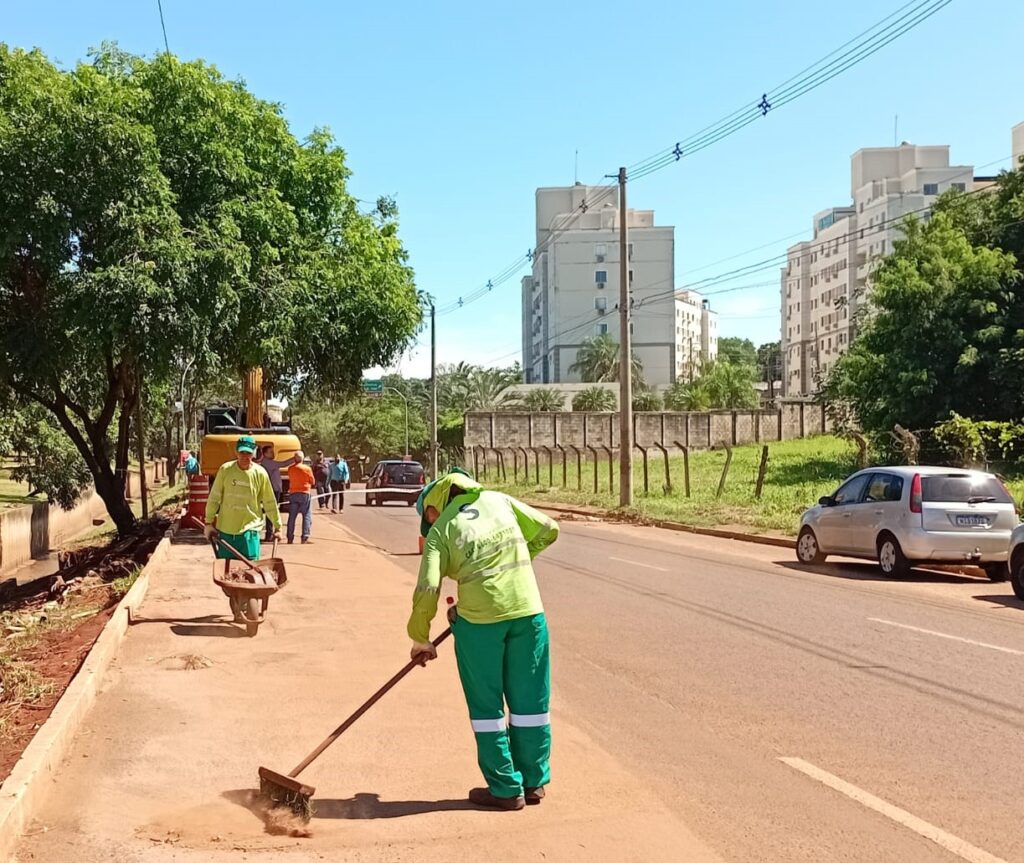 A quarta-feira (17) começou com sol forte e sem previsão de chuva. Com isso, as equipes da Secretaria Municipal de Infraestrutura e Serviços Públicos (Sisep) estão trabalhando intensamente na limpeza, remoção de árvores caídas e retirada de resíduos das bocas de lobo. Também foi iniciada a preparação dos materiais que serão utilizados nas obras para conserto do buraco aberto na Avenida Manoel da Costa Lima e das placas de concreto que caíram no canal do Córrego Segredo, na Avenida Ernesto Geisel. Caso não chova, as obras nesses locais devem começar na quinta-feira (18).