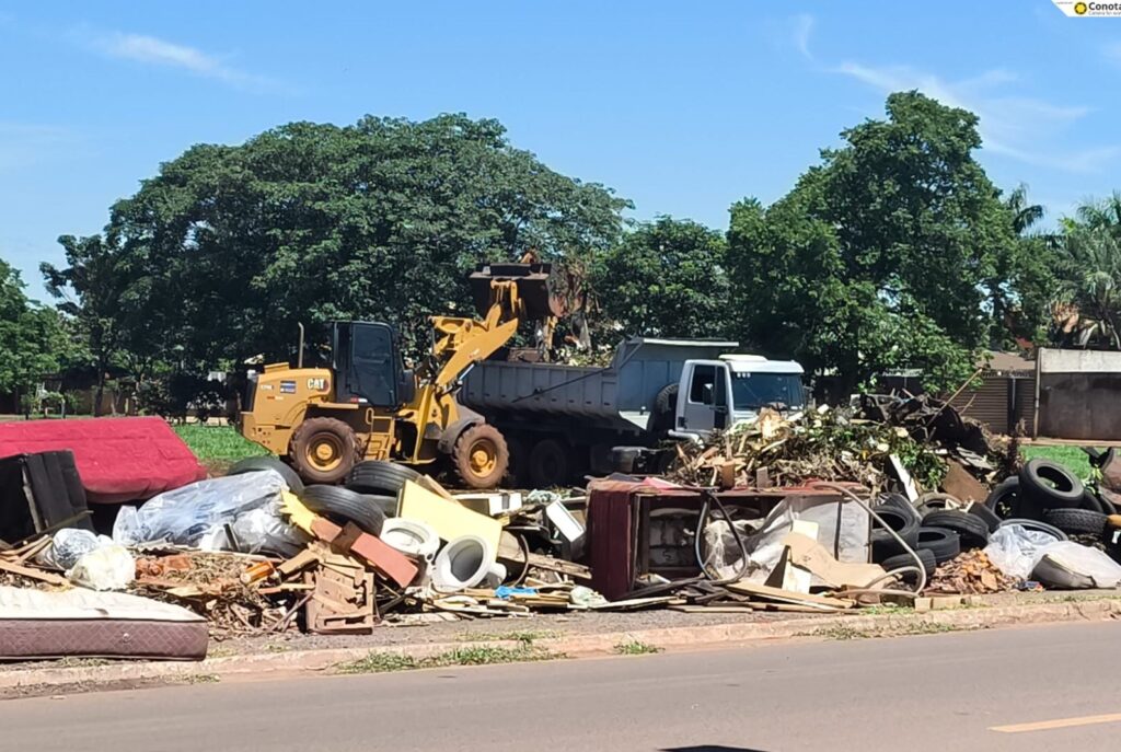 Em outra frente de trabalho, máquinas, caminhões e equipes fazem o recolhimento de resíduos sólidos depositados na Rua Fátima do Sul. Esse foi um dos pontos definidos pela Secretaria Municipal de Saúde (Sesau) para que os moradores pudessem descartar materiais que acumulam água, como parte da estratégia da campanha de combate à dengue. O recolhimento estava programado para terça-feira, mas precisou ser adiado para esta quarta-feira em razão da chuva.