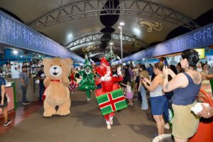 A magia do Natal dos Sonhos tomou conta da Feira Central de Campo Grande na noite deste domingo (21), levando alegria, cores e emoção a um dos pontos mais tradicionais e turísticos da Capital. A parada natalina atraiu famílias inteiras e encantou o público com personagens temáticos que já se tornaram queridos, como os protagonistas da Família Rena, além do simpático urso Ted e da capivara natalina.