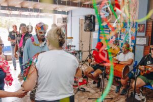 A proposta do evento incluía um pequeno cortejo pelas ruas do entorno da unidade, que acabou sendo inviabilizado pela chuva. Ainda assim, o espírito de integração e celebração marcou a programação. “A intenção é celebrar o Carnaval sem distinção, trazendo alegria para o CAPS e para todo mundo. Queremos mostrar que a música e o Carnaval são direitos de todos”, destacou Lucas Mourão, coordenador do Bloco Subaquera.